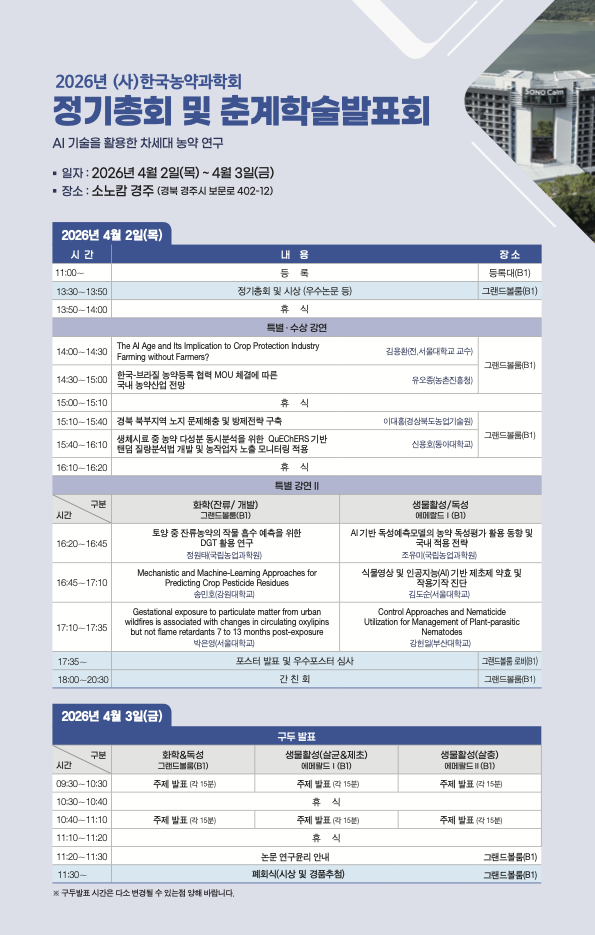 2026년 정기총회 및 춘계학술발표회 개최 안내